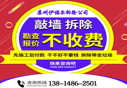 蘇州伊諾爾拆除工程有限公司是一家規(guī)模較大,經(jīng)濟(jì)實(shí)力雄厚的專(zhuān)業(yè)拆除公司,提供室內(nèi)拆除,砸墻,地磚,墻磚,頂,管道,公寓,酒店,辦公樓拆除服務(wù),我們本著誠(chéng)信經(jīng)營(yíng),公平交易的原則,從事家裝,工裝,大型商場(chǎng)拆除,建筑物廠(chǎng)房樓房拆除工程并回收所有舊貨設(shè)備。我們從事拆除行業(yè)多年,具有多年的拆除經(jīng)驗(yàn),提供多種建筑的內(nèi)外拆除施工服務(wù),因?yàn)閷?zhuān)業(yè)性,安全性,可信度高而獲得了客戶(hù)的認(rèn)可。